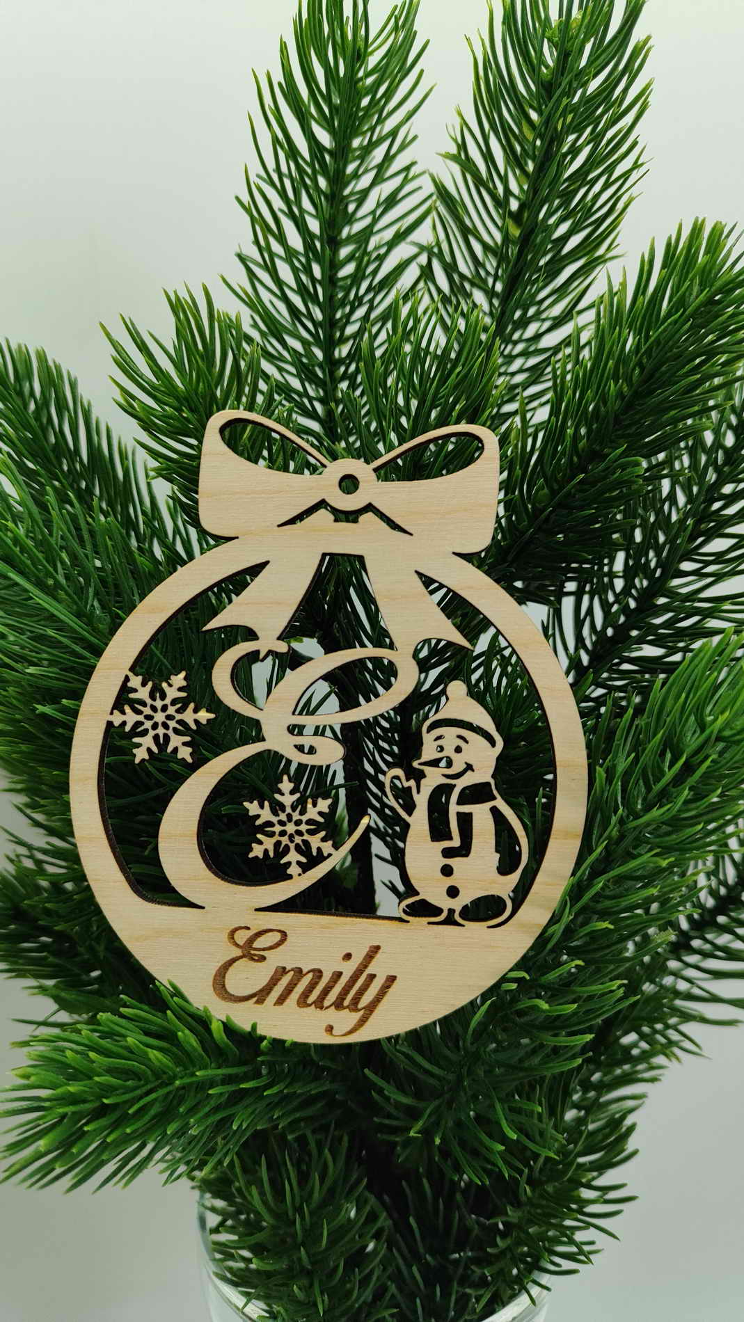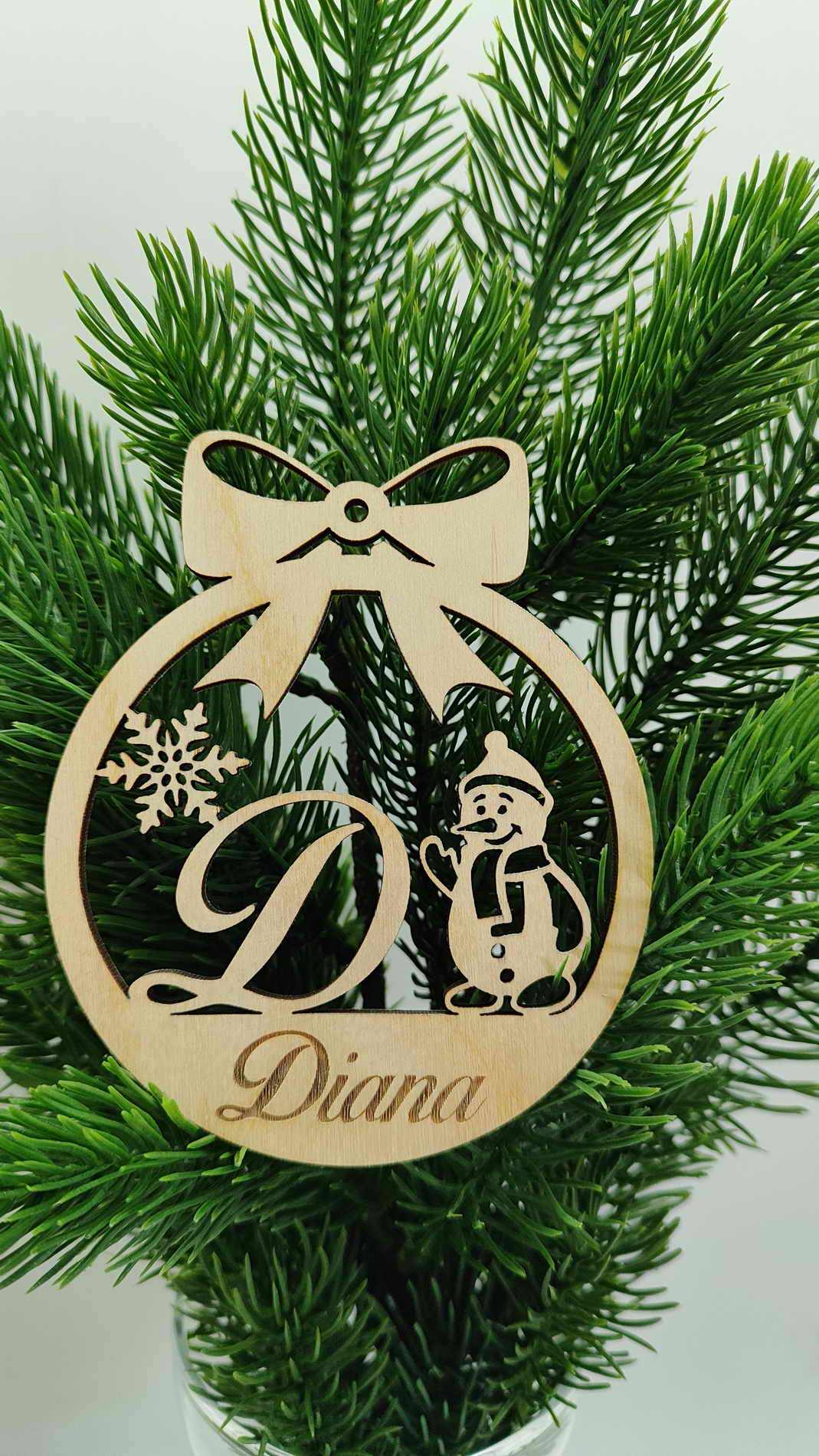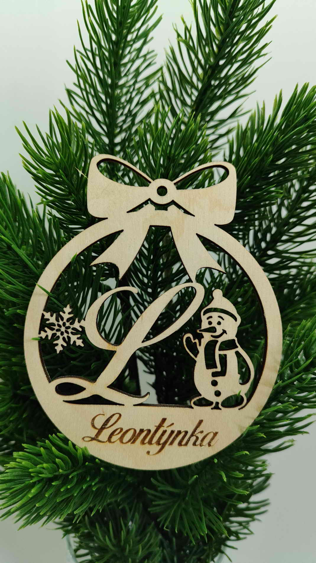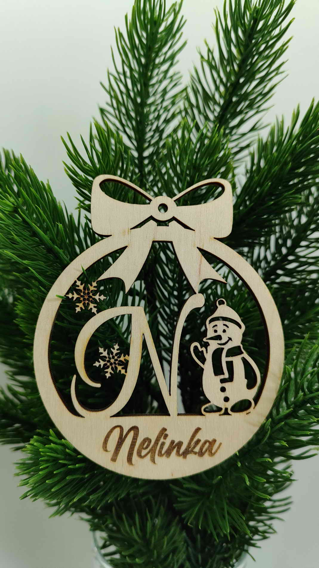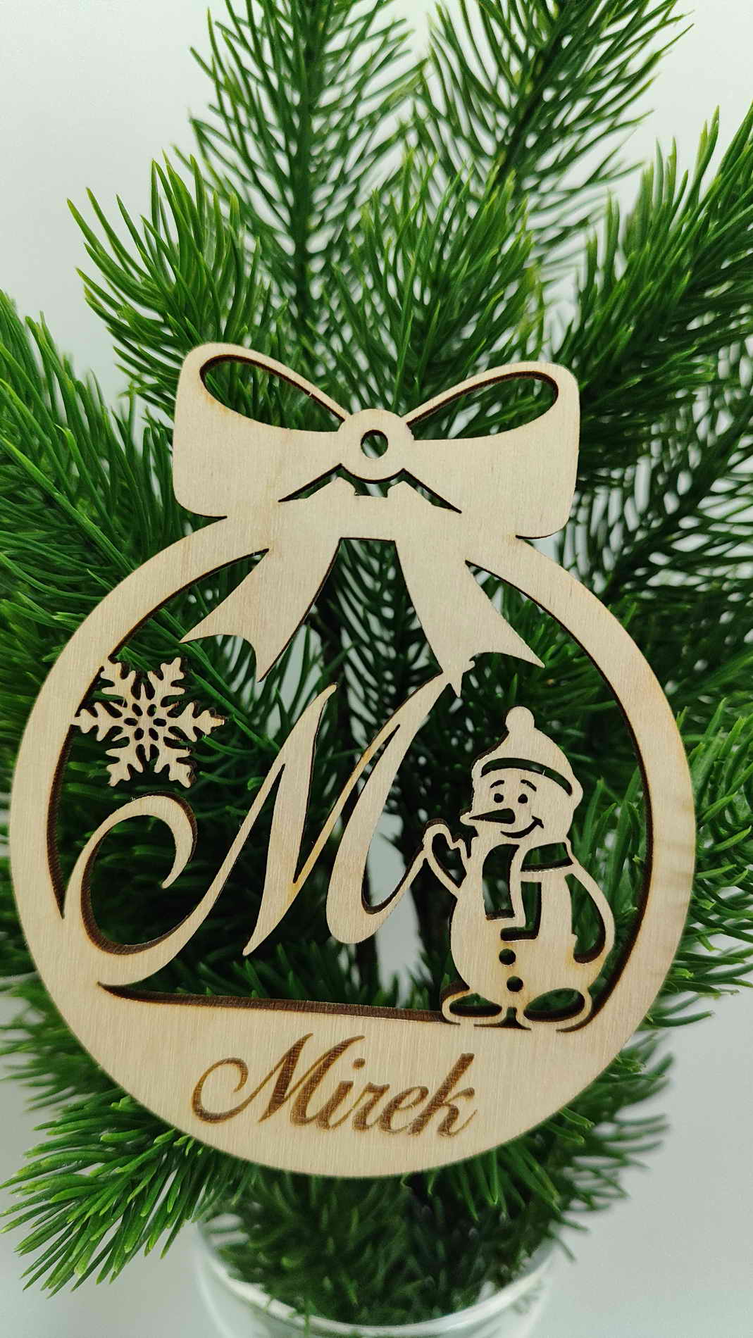 Vánoční ozdoba se jménem vyrobena z 4 mm březové překližky